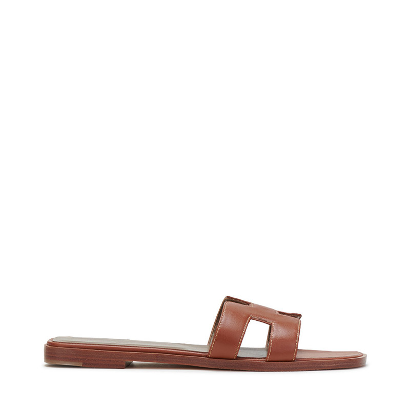 فشن تابستان پوست گاو قهوه ای زنانه صندلی های صاف با H سوراخ بالا