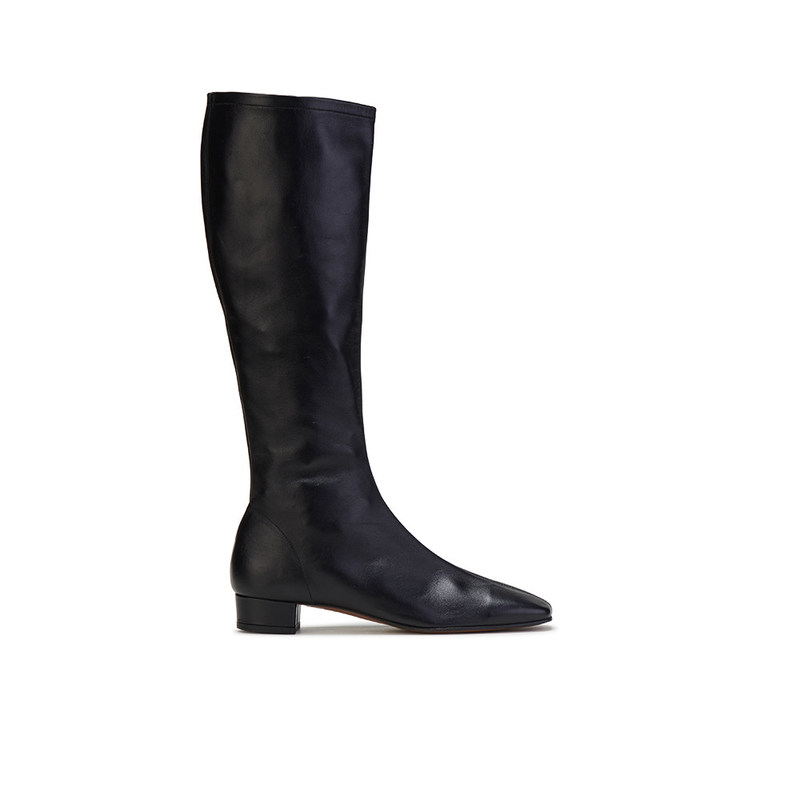 کفش های پوست گوسفند سیاه با پاشنه های صاف، سبک مدرن و مد